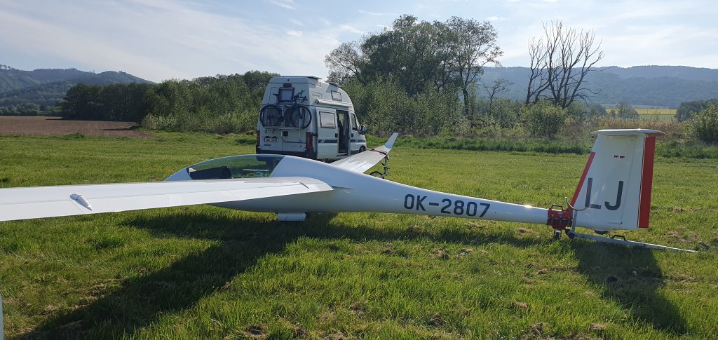 kluzák JAV přistál na Bludovském kopci.