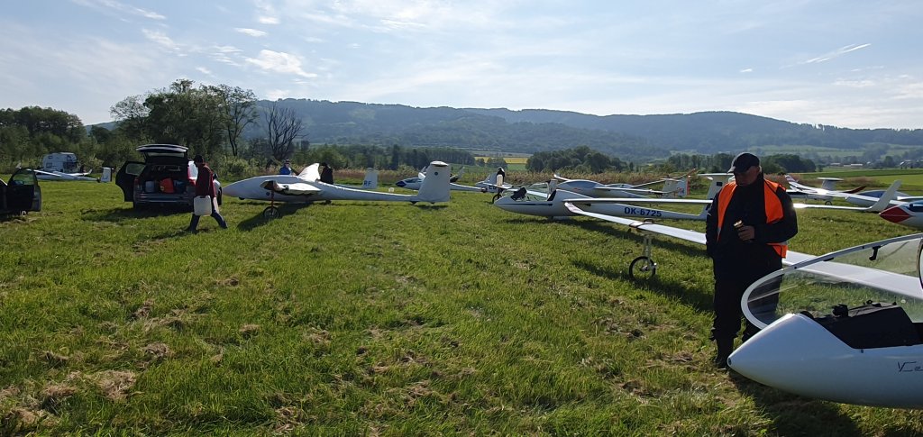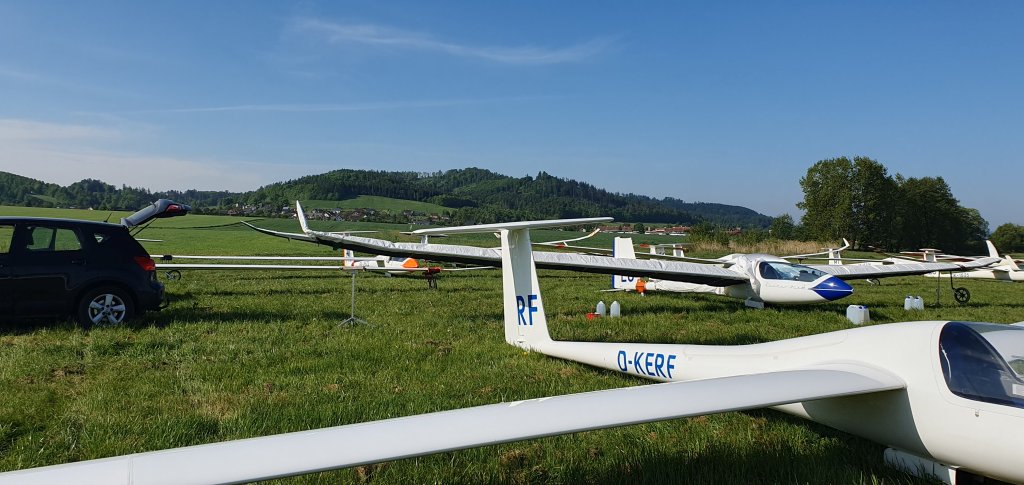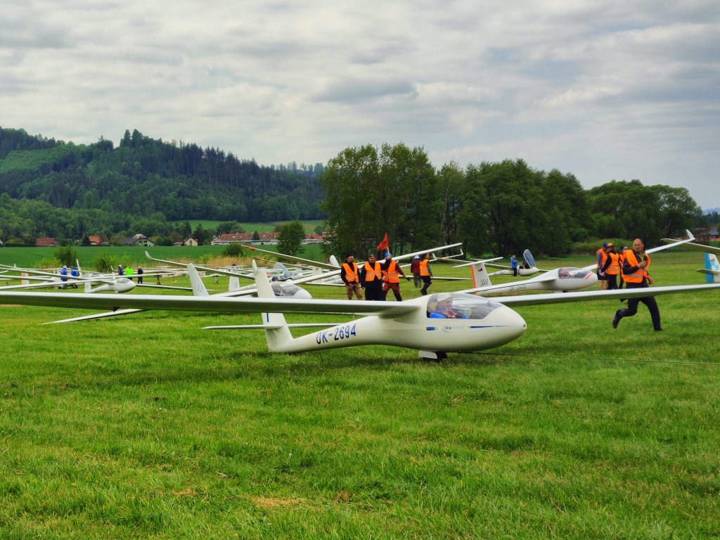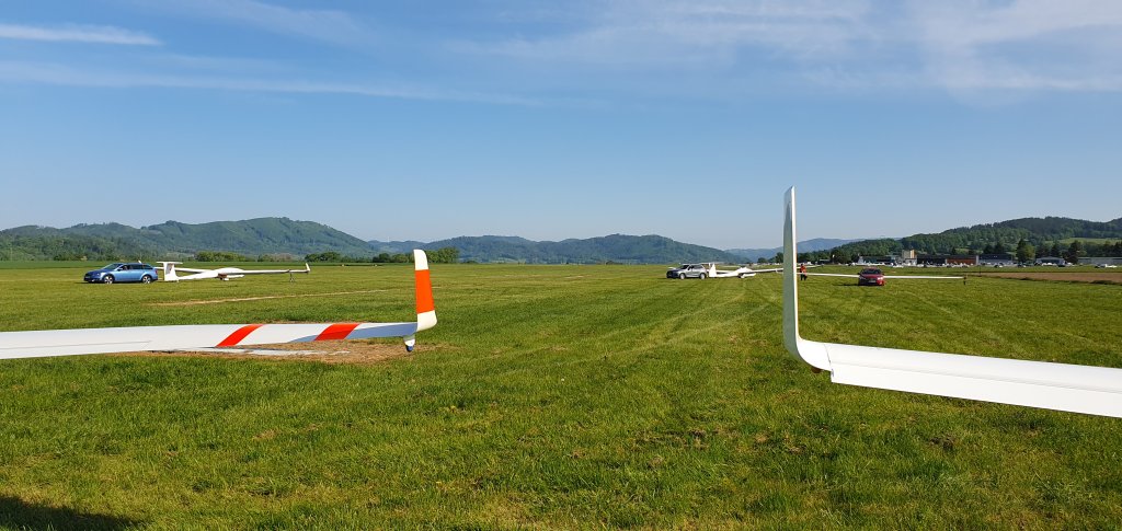 první kluzáky z klubové třídy po obletu trati:19, WO, 34, MR, RT, S20, AX, B8, OI, GT.