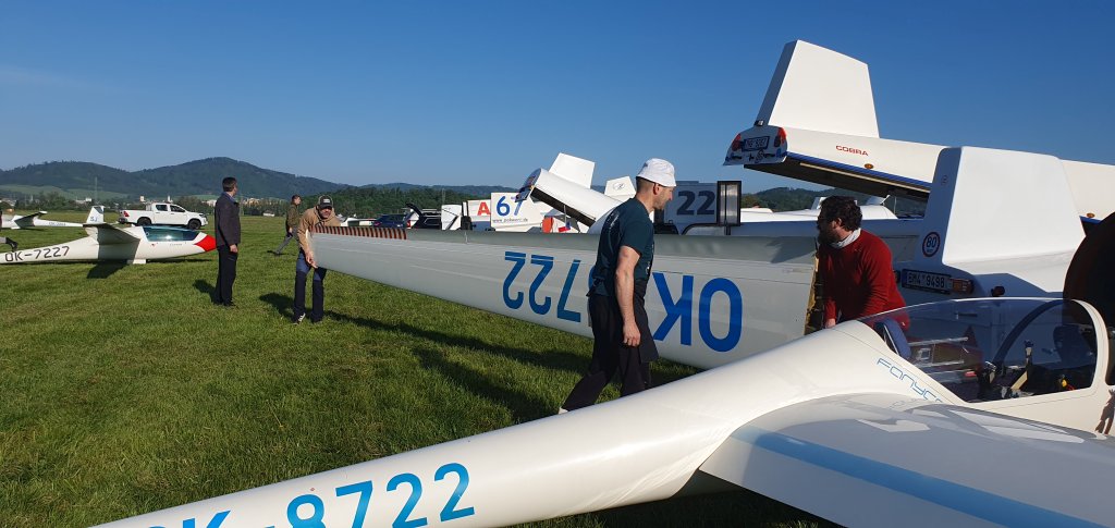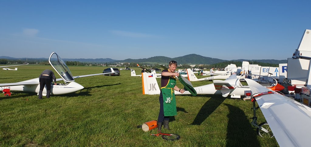 jedenácté hodiny, devět vlečných letadel začalo postupně tahat soutěžní větroně do vzduchu. Nejdříve startuje třída club. Po startu posledního, mají stanovený čas na zahájení soutěžního letu na 11.49.