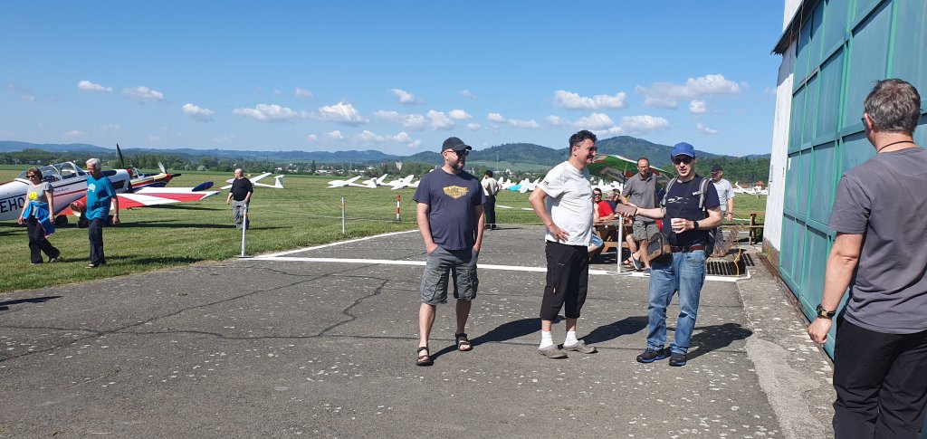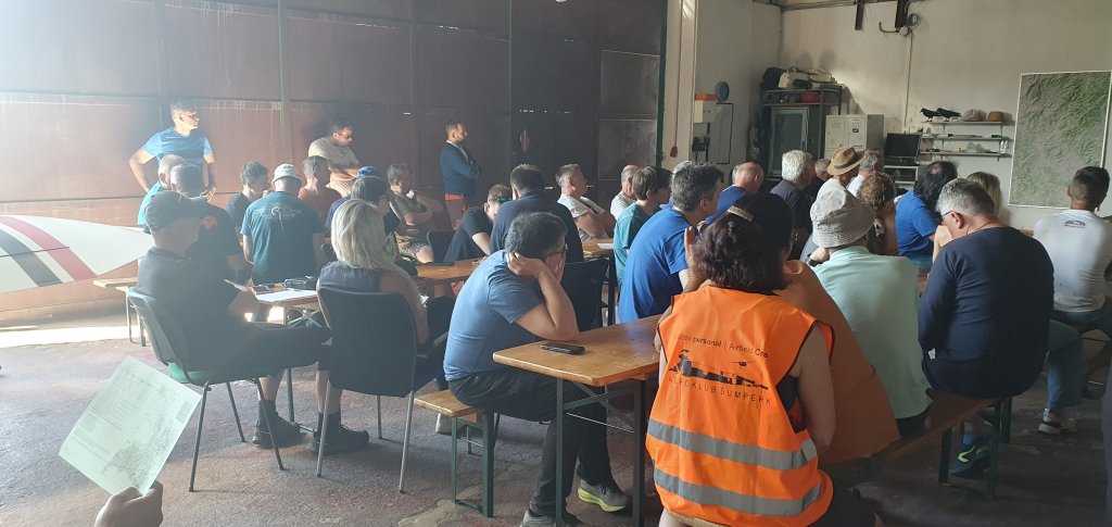 po briefingu, tratě jsou vypsány. Závodníci se chystají k letu.