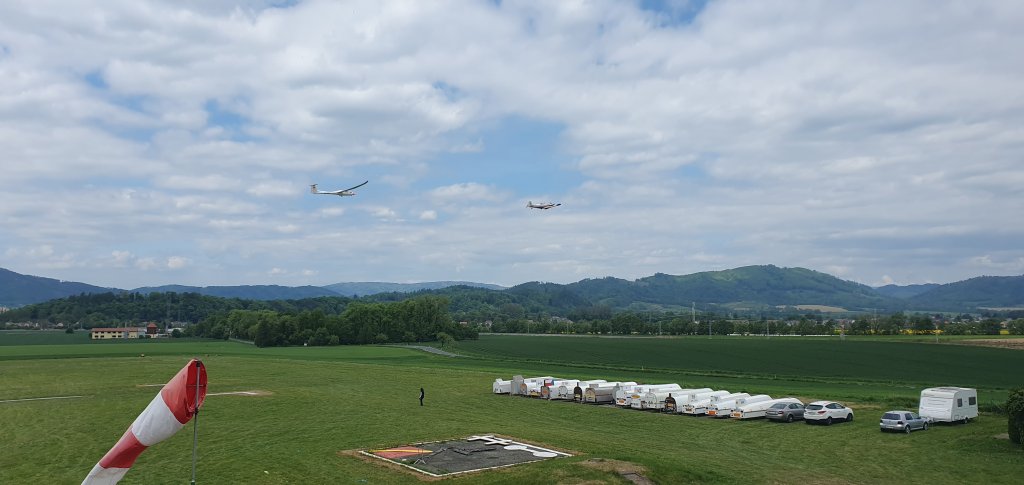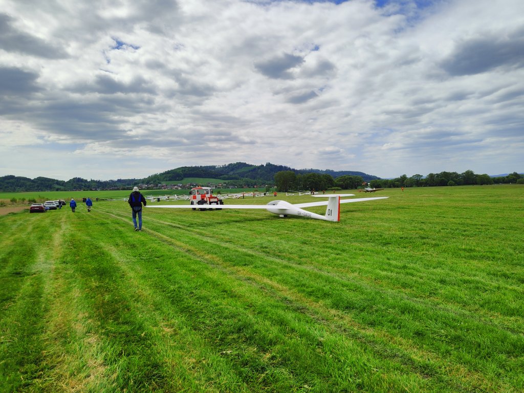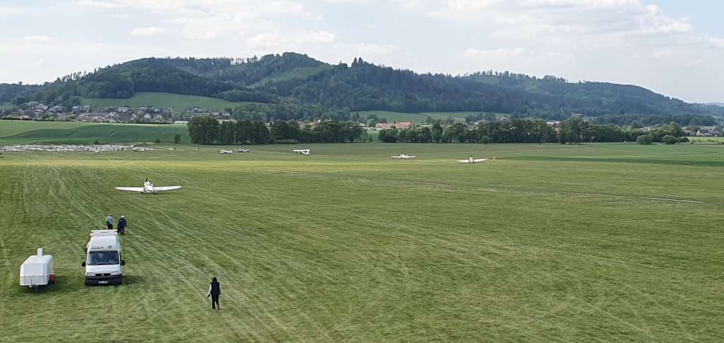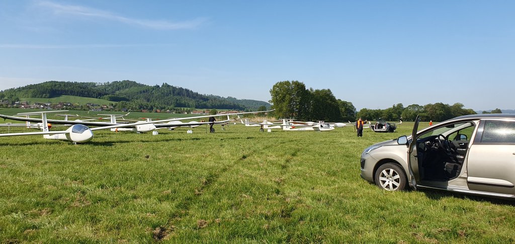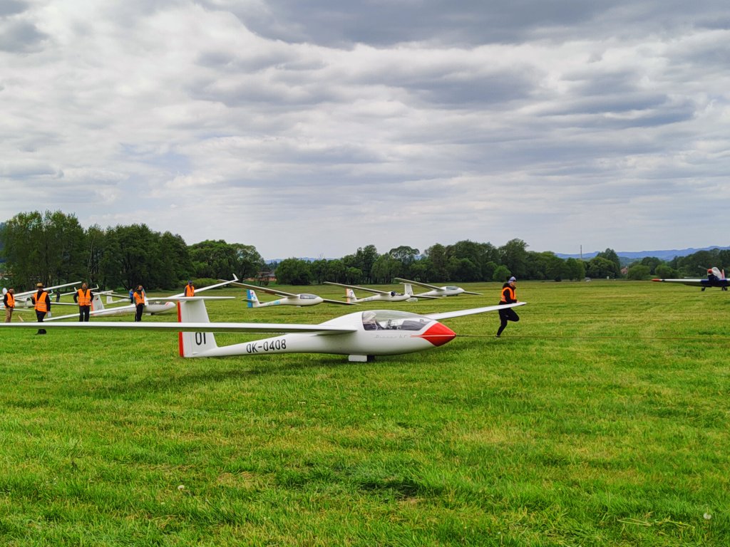 první kluzáky z klubové třídy po obletu trati:19, WO, 34, MR, RT, S20, AX, B8, OI, GT.